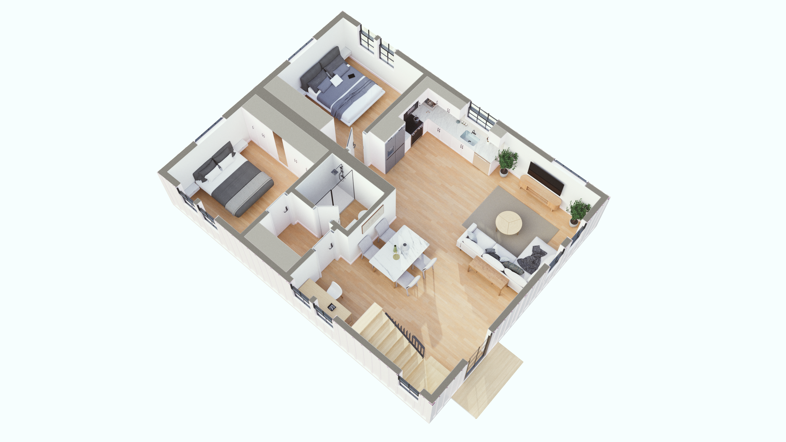 Studios & 1-bed ADUs – Ideal for compact parcels, side-yard placements, guest stays, or work-from-home use.
